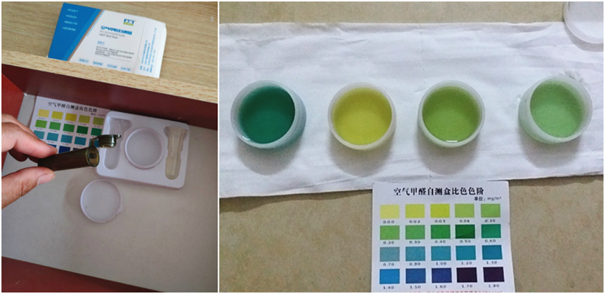 檢測家具內(nèi)甲醛,查找甲醛污染源,推薦用甲醛自測盒,而不是電子類甲醛檢測儀。甲醛自測盒采用國家標(biāo)準(zhǔn)的甲醛檢測方法,利用甲醛易溶于水的原理,自然吸收空氣中的甲醛,檢測結(jié)果穩(wěn)定可靠。