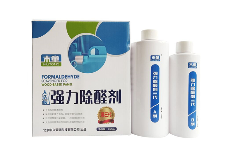木童強(qiáng)力除醛劑第三代產(chǎn)品是我公司在2002年第一代,2006年第二代的強(qiáng)力除醛劑基礎(chǔ)上,于2013年研發(fā)成功的一款新型高效人造板甲醛清除劑,清除人造板長(zhǎng)期釋放甲醛效率更高、更安全。第三代采用全新的雙組分獨(dú)立包裝,不僅能夠從根源上有效解決人造板脲醛樹脂膠長(zhǎng)期釋放甲醛的污染問(wèn)題,而且適用范圍更廣泛,人造板裸露面、油漆家具內(nèi)側(cè)皆可使用。不僅適合專業(yè)治理機(jī)構(gòu)使用,也適合消費(fèi)者自助治理室內(nèi)甲醛污染。