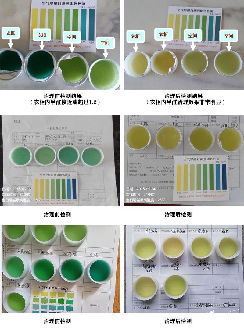 驗證除甲醛產品的真實效果非常簡單:只需選擇試用1瓶除甲醛產品,噴刷在甲醛污染較重的家具內,7天后、10天后,或者30天后再次檢測,是否真實有效,清清楚楚,一目了然。