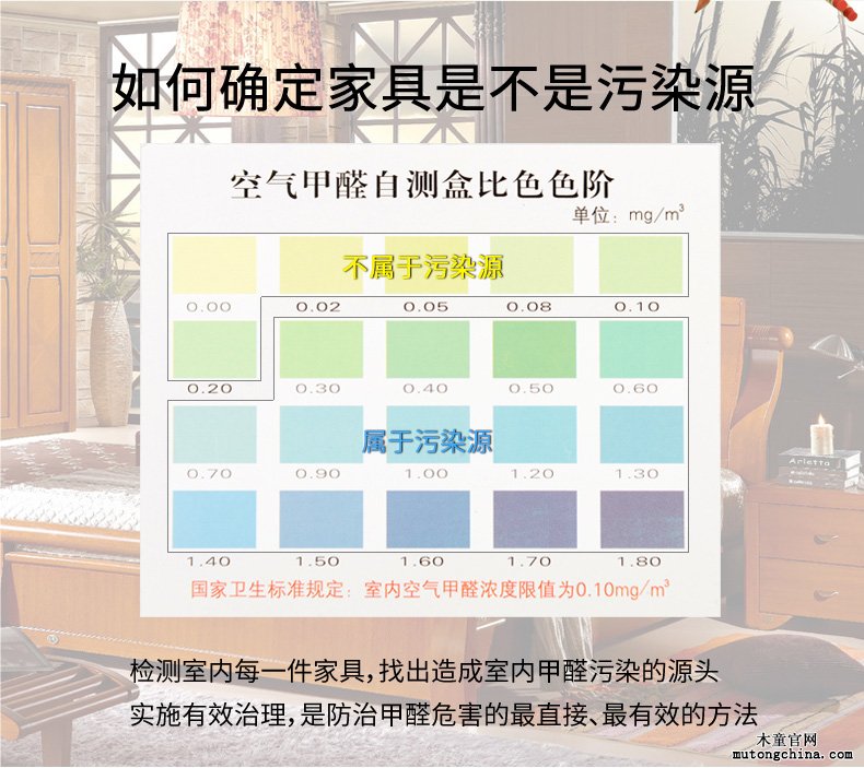 第一,我們首先用正規甲醛檢測盒(木童、蘭康保、六角體)找到甲醛的釋放源。家具甲醛污染是否嚴重,是否屬于甲醛污染源,一目了然。