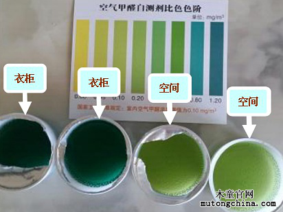 例如,治理前主臥室甲醛是0.2毫克,治理后達(dá)到0.1毫克,可是0.2毫克與0.1毫克這樣微小的差異,在檢測盒內(nèi)試劑的顏色上都是黃綠色,很難區(qū)分,大多數(shù)人會感到困惑;但是污染源內(nèi)的甲醛濃度一般都比較嚴(yán)重,列如很多床頭柜都能達(dá)到0.6以上,試劑顯藍(lán)色,治理后如果效果明顯,降到0.2以下,試劑顏色為黃綠色或黃色,這樣的前后對比非常明顯,一目了然。