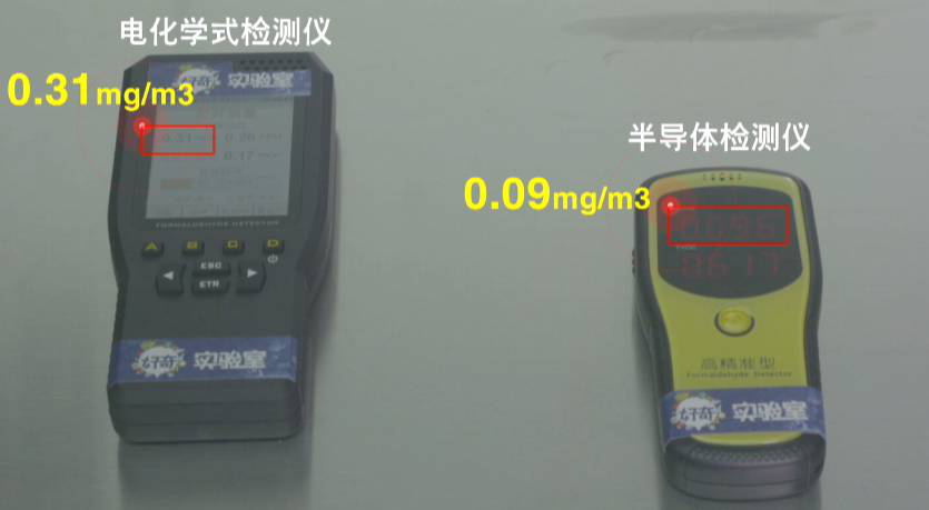 某寶上熱賣的甲醛檢測儀品牌眾多,價格也是幾十到幾百不等;有的銷量很好的一月能賣數(shù)萬臺,點開評價也是好評一片,其中“檢測靈敏”、“數(shù)據(jù)精準”成了主要關鍵詞。看的人眼花繚亂。那這些檢測儀真的那么好用嗎?答案是:沒有用!誤差極大,基本和玩具差不多。《好奇實驗室》某期節(jié)目曾做過實驗:兩臺便攜式甲醛檢測儀,一臺是半導體傳感器,一臺是電化學傳感器,和國標的檢測方法進行對比,3臺儀器全部放在密封艙里,然后用福爾馬林溶液往里面加點料。結果是這樣的: