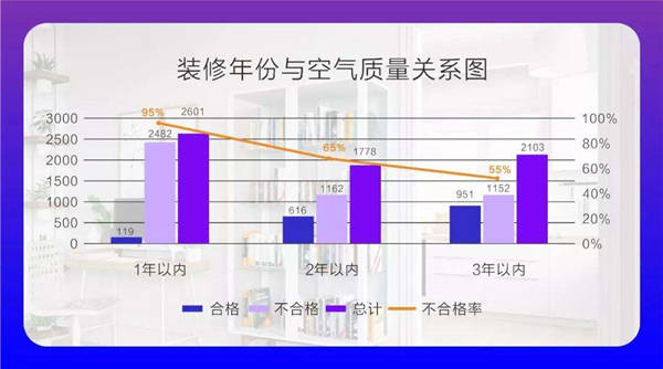 中國測試技術研究院化學所發布的《2019中國室內空氣污染狀況白皮書》指出,新裝修一年內室內空氣質量合格率僅有5%;中央電視臺《經濟信息聯播》中對北京、上海、天津三大城市的新老居室抽檢數據表明——高達70% 的居室存在甲醛超標問題。客觀現實如此,人們也深刻認識到污染的危害性,健康的重要性,除甲醛、治理室內空氣污染已成為全社會全民共識。