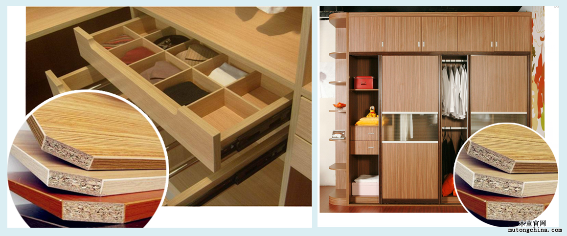 最常見的板式家具就是“定制整體衣柜”,定制整體衣柜是典型的三聚氰胺飾面板家具,其他常見的三聚氰胺板家具還包括成品衣柜、書柜、床、餐桌、櫥柜和辦公桌等。
