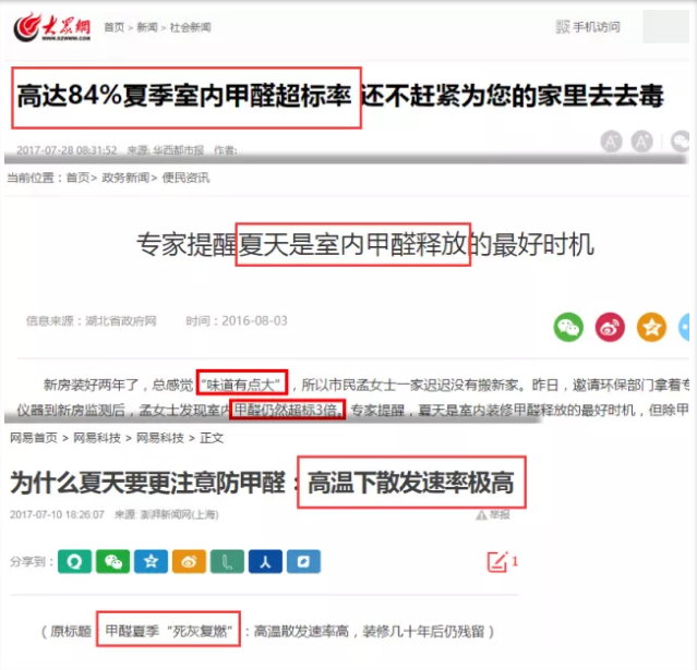 甲醛會源源不斷揮發釋放15年之久!更有相關研究結果表明:高溫天氣直接導致室內甲醛釋放量要比平常高出20%至100%;室溫每上升1℃,室內空氣中的甲醛濃度增加0.15-0.37倍。不治理甲醛就像像生活在一個毒氣室。