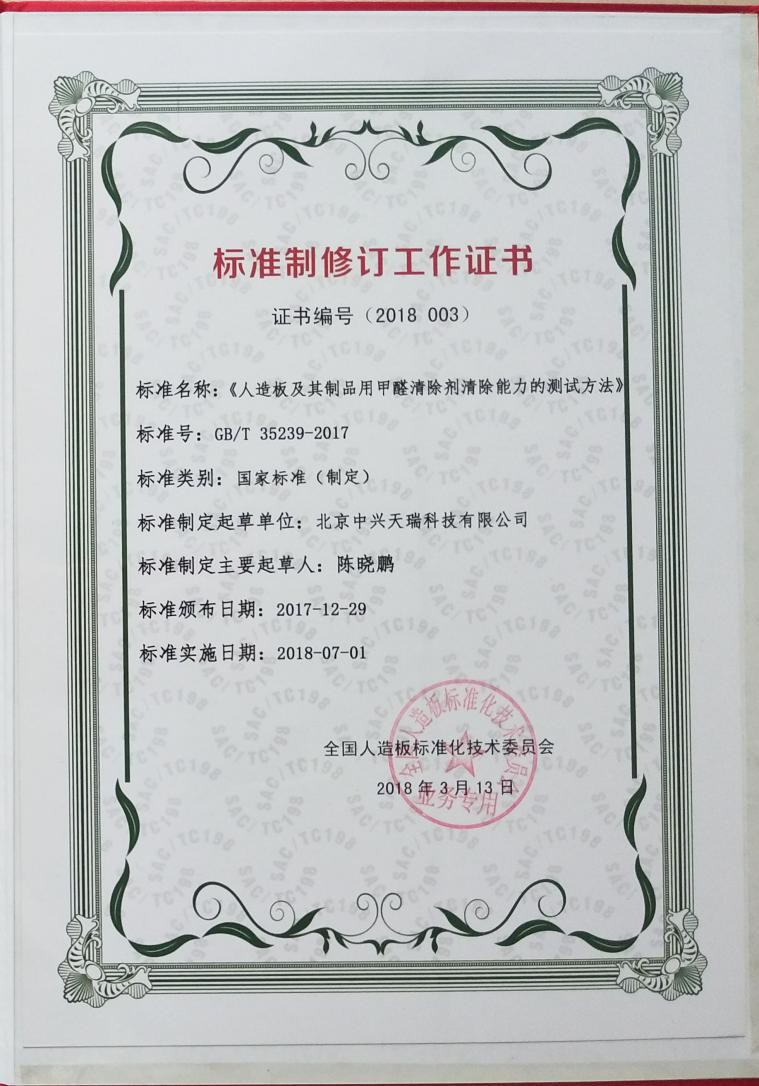 木童人造板甲醛清除劑。木童18年一直研究中和反應(yīng)原理的甲醛清除劑,曾被央視報(bào)道的除甲醛品牌,央視推薦除甲醛品牌,不能說是去甲醛最好產(chǎn)品,但可以說是非常有效讓老百姓放心的除甲醛品牌。人造板甲醛清除劑”是目前唯一有國(guó)家標(biāo)準(zhǔn)檢驗(yàn)的“甲醛清除劑”產(chǎn)品,其他甲醛清除劑都沒有國(guó)家標(biāo)準(zhǔn)(國(guó)家標(biāo)準(zhǔn):《人造板用甲醛清除劑清除甲醛性能的檢驗(yàn)方法》)