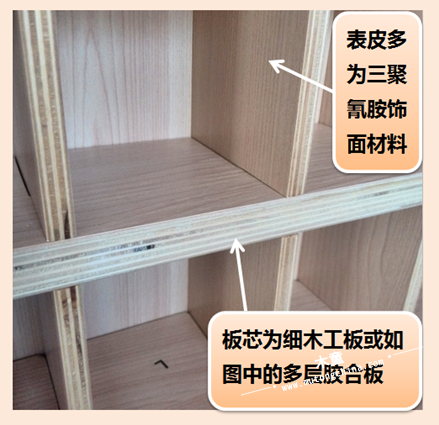 家具外表面使用了經(jīng)過處理的裝飾面板,或者噴涂油漆,家具內(nèi)部不作任何處理,為細木工板、膠合板等素板的裸露面,甲醛揮發(fā)無任何阻擋,是最大的長期甲醛污染釋放源。如圖中的床箱和儲物柜。