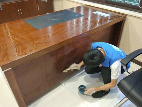 長沙銀行的支行領導聯系并委托我們長沙木童對其新裝修辦公區域進行了室內空氣污染處理-辦公室除甲醛、除油漆味,針對油漆味家具使用木童家具除味劑進行涂刷3-5遍;針對貼皮的辦公家具,我們的技術人員判斷其人造板為刨花板和密度板,甲醛釋放量較大,用木童除醛二號三代進行2-4遍的噴涂。處理后交由第三方CMA檢測機構檢測驗收,甲醛、苯系物均在國家標準范圍內,從現場可以感受到油漆味得到了明顯的減弱,甲方非常滿意。